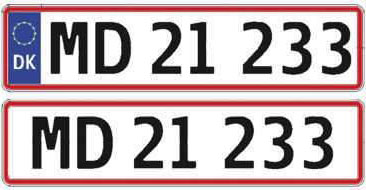 Vi har dog valgt kun at have personbil nummerplader på lager, da det oftest er disse biler, vi sælger. Nummerpladerne fås med eller uden EU-logo som vist nedenfor.